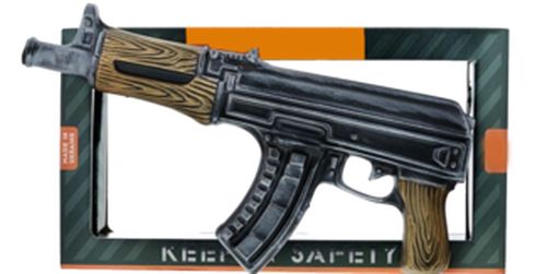 Originální dárkové balení obsahuje láhev vodky Kalashnikov ve tvaru legendárního samopalu.