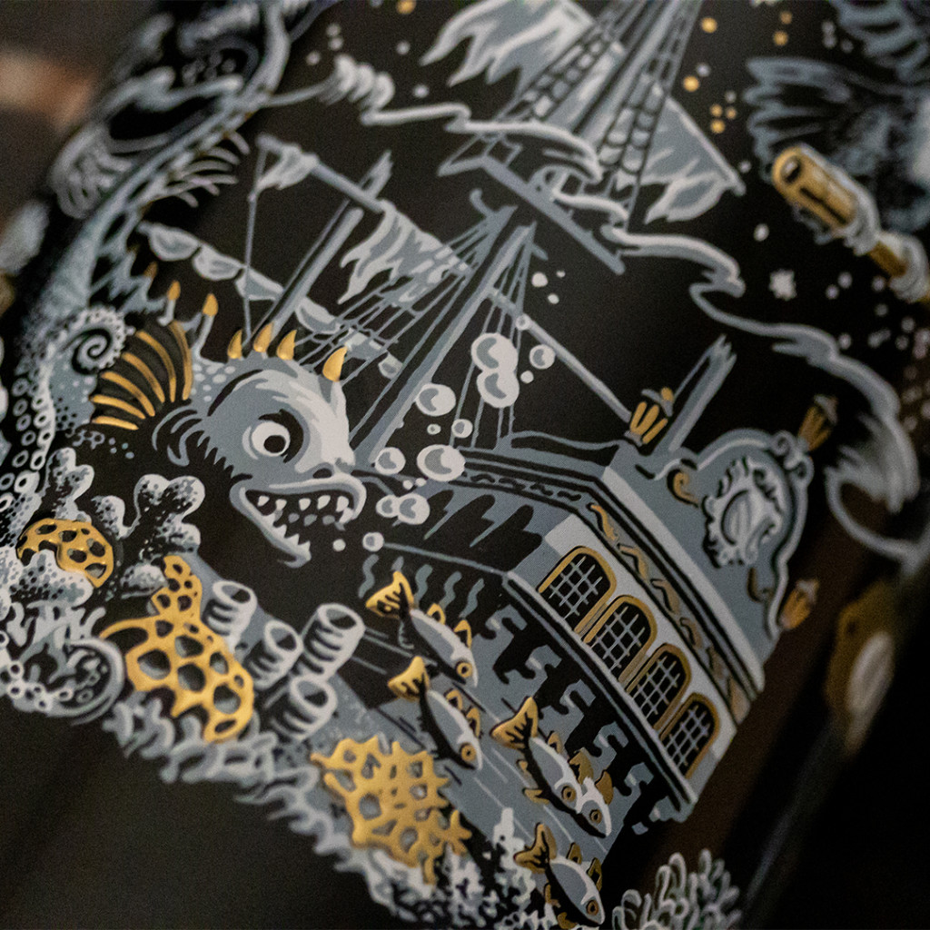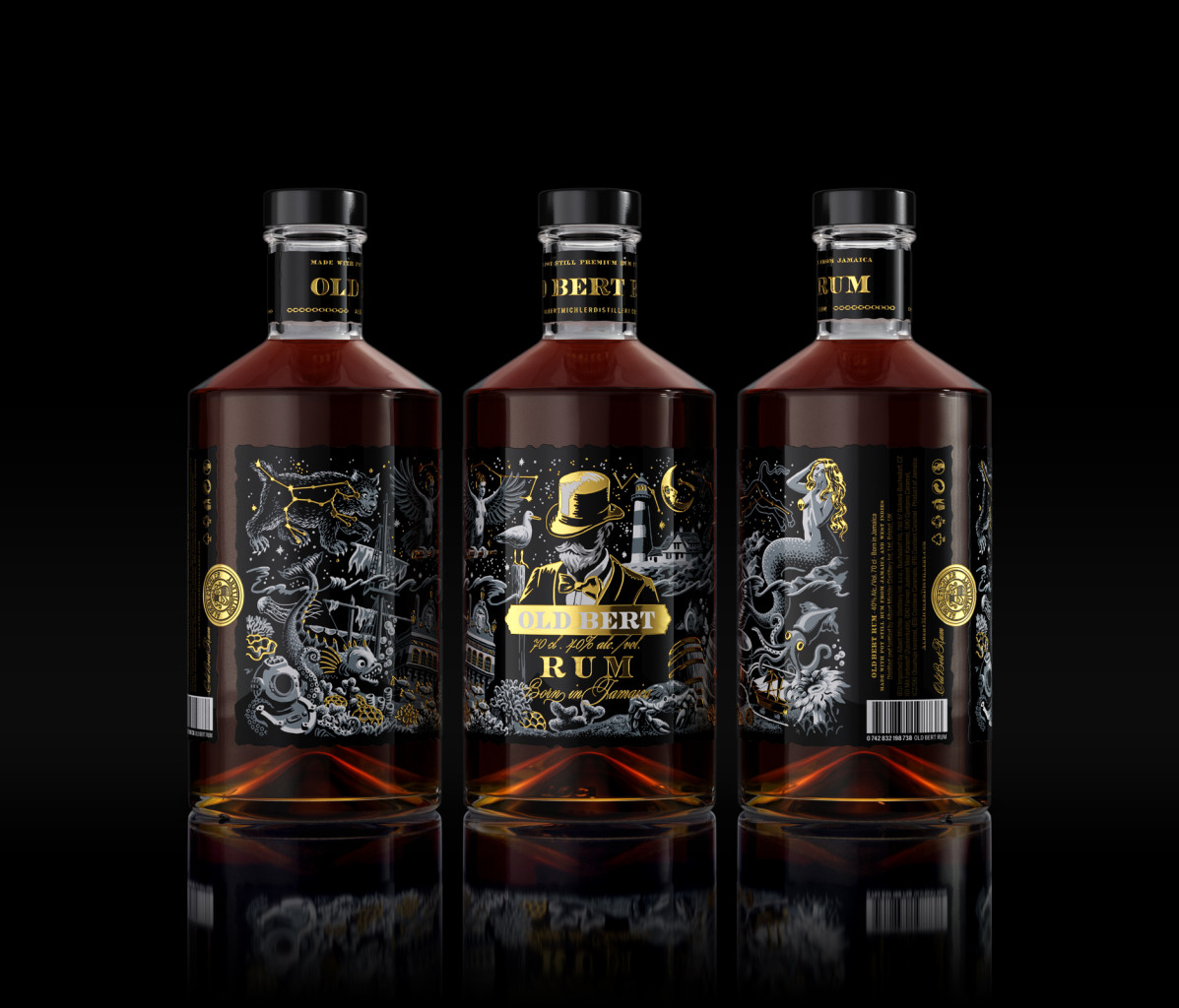 Etiketa je kolem celé lahve, tedy bez zadního etikety. V prostřední části je vizualizace Old Berta v cilindru, kde je jeho obličej záměrně nerozeznatelný. Jednotlivé prvky na etiketě mají představovat virtuální svět v noci, jak si ho Bert představoval. Design se skvěle zapadá do celé řady produktů Old Bert, vytvořené stejným ilustrátorem právě pro tento produkt. Opět zde najdeš několik vtipných / virtuálních kreseb zvířat. Jak etiketa, tak plechová dárková tuby představují hvězdnou oblohu v noci. Jednotlivé prvky jsou vyvedeny černé, zlaté a šedé. Etiketa je vyrobena z jemného texturované papíru. Je použita zlatá foliová ražba v hlavním logu, některých textech atd. Reliéfní prvky podporují živost celého díla. Celý design je ručně malován mladým umělcem, je originální a namalován speciálně pro tento projekt. Nově navržené lahve s embosovanými prvky jsou baleny výhradně v plechové dárkové tubě.